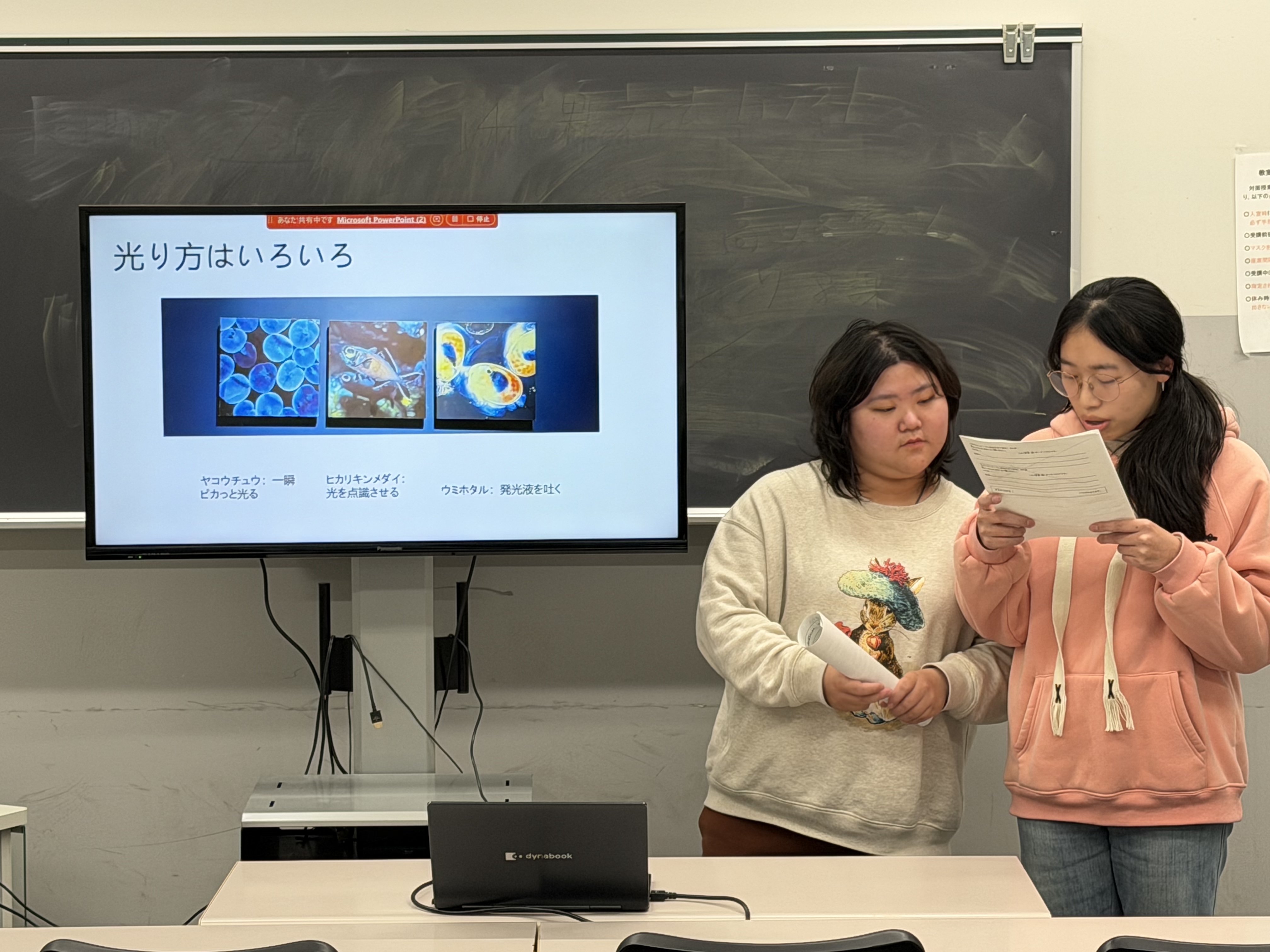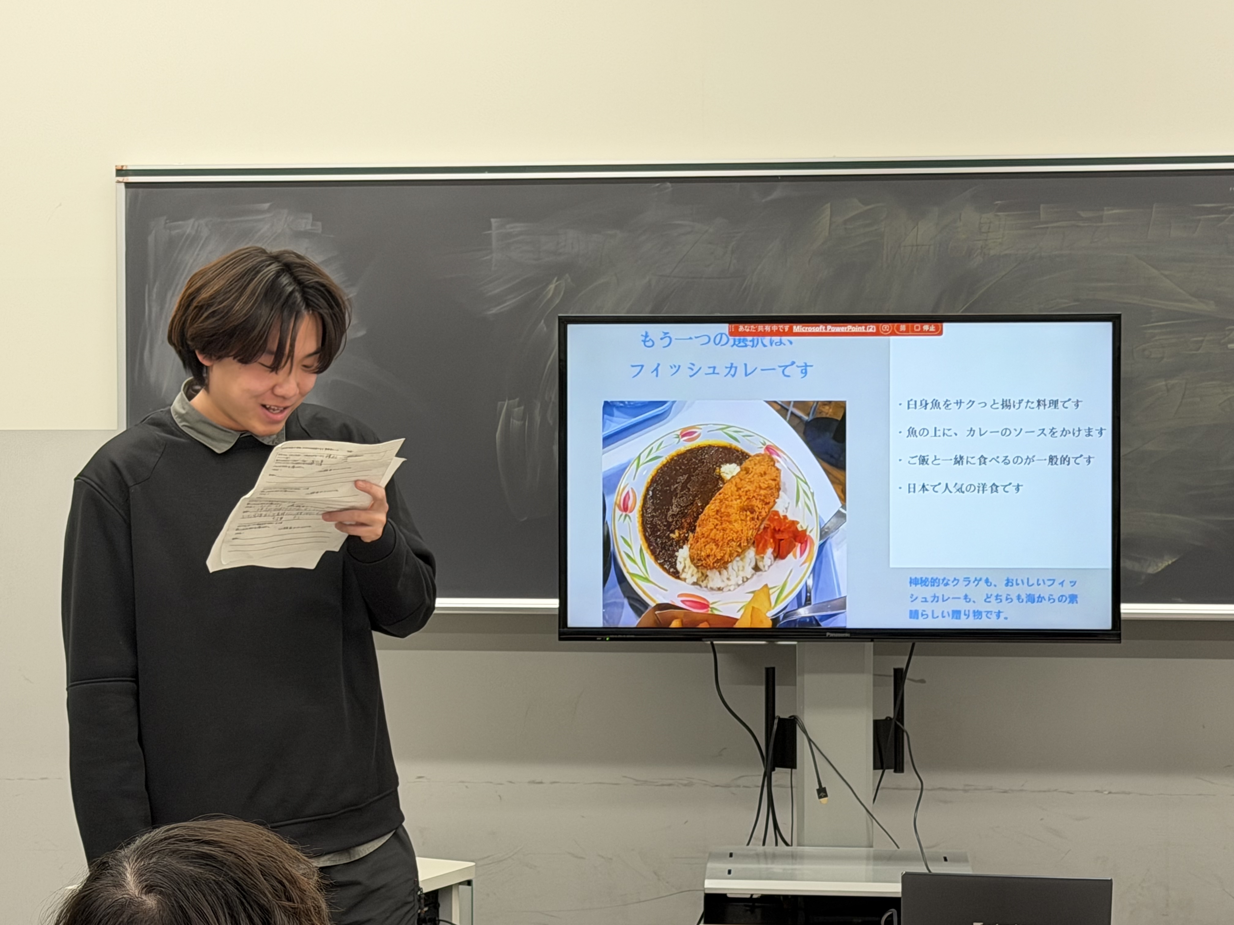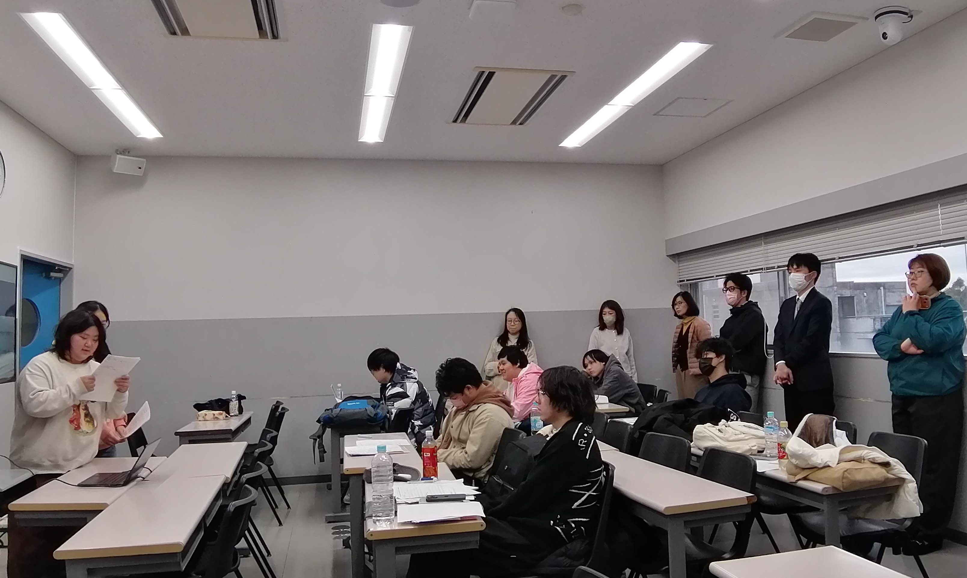 2025年12月に日本文化研修の授業の一環として訪問した「葛西臨海水族園」での学びをグループで発表しました。グループごとにテーマを決め、テーマについて調べ、PPTを作成、発表を行いました。また、テーマについてのプレゼンに加え、「葛西臨海水族園」で見学した海洋生物の中から自分が気に入った生き物を2つずつ紹介しました。