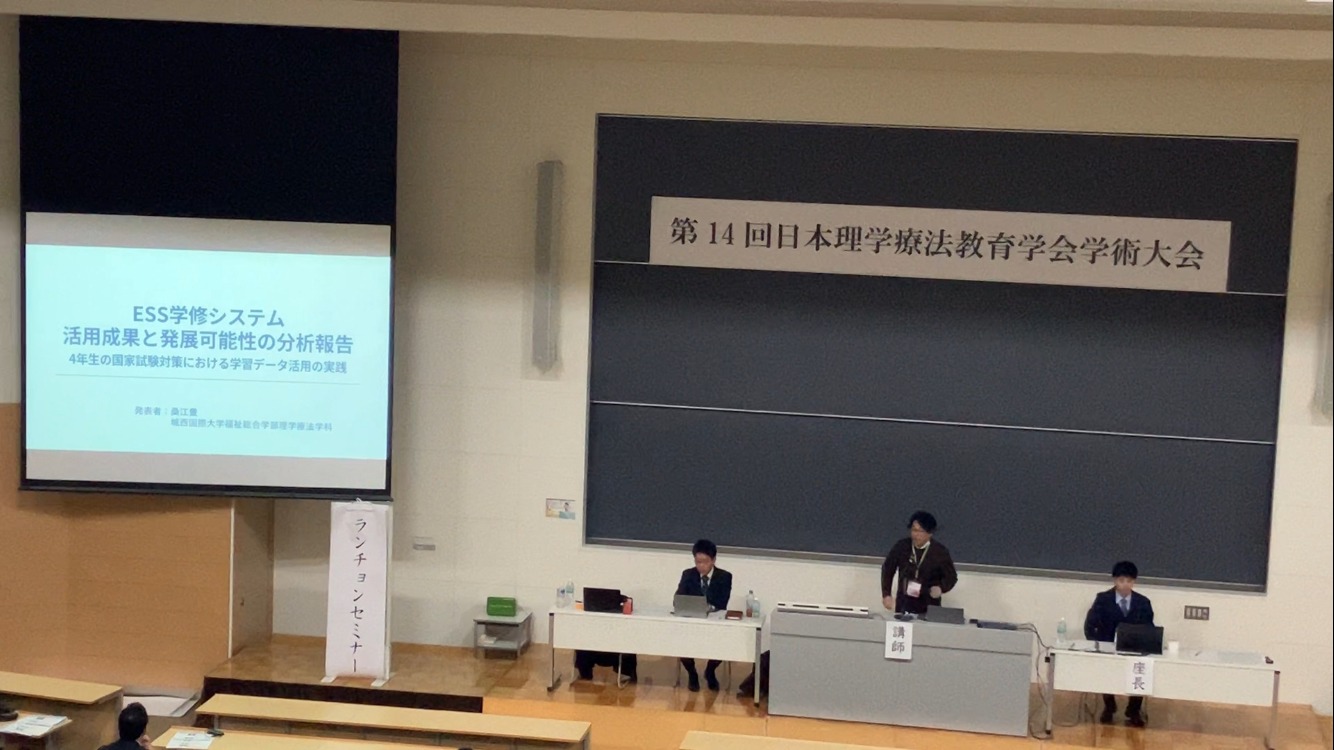 2026年1月11日、東京都で開催された「第14回日本理学療法教育学会学術大会」にて、理学療法学科の桑江豊准教授と深谷泰山助教が講師として登壇。ICT教育の先駆者であるSATT株式会社との連携による、最新の国家試験対策について講演を行いました。