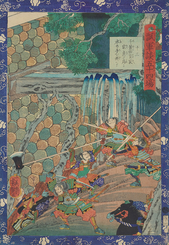 Fifty-four Scenes from the War Chronicle of Hideyoshi: No.13, Chibata Kazuie Has the Water Supply Cut Off by Sōtei