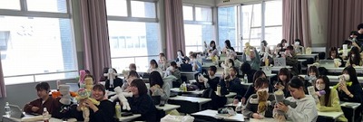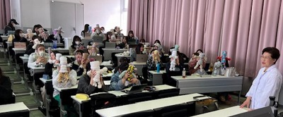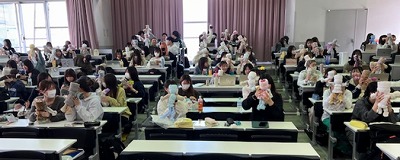3年生の母性看護方法論演習では、胎児の位置を触診で確認するレオポルド触診法や授乳支援を学ぶために、自宅にあるタオルを使って胎児の人形を作成し、講義を聞きながら手元で技術の確認をしたり、自宅で練習をしたりします。