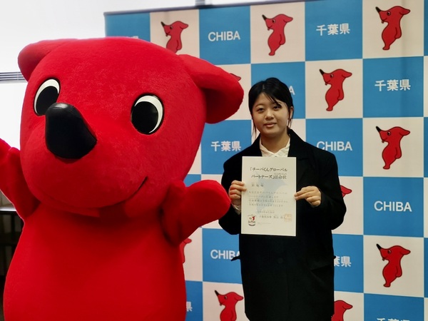 「チーバくんグローバルパートナーズ」は、2011年度に始まった「チーバくんと共に千葉県の魅力を海外に向けて発信する大使」(略称:チーバくん大使)をベースとして発展してきた事業です。2020年度までの9年間の間に、本学観光学部からは、中国、ハンガリー、台湾出身の留学生計6名が任命され、千葉県内の留学生代表として、観光地の魅力分析や観光客の誘致などの専門性を活かした海外向け情報発信に尽力してきました。