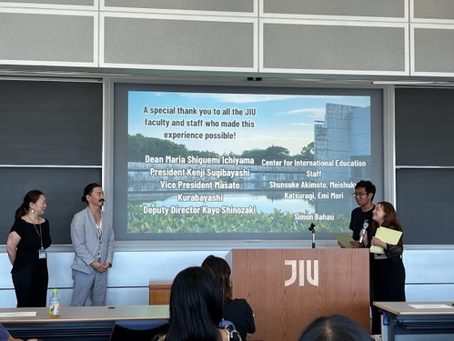 また、JIUにおいては、書道、浴衣着付け、祭り寿司作成など多様な日本文化も体験し、日本人学生との交流も行いました。最後は、まとめの発表会を行い、成果を共有することができました。また、この研修は2024年度も開催される予定です。