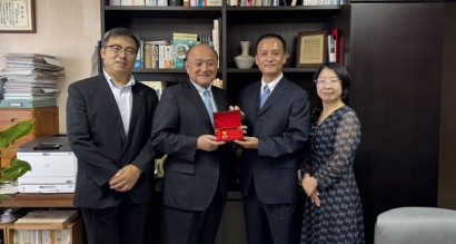 (左から)宮偉教授、倉林眞砂斗学長、趙雷副院長、智先生(江西農業大学)
