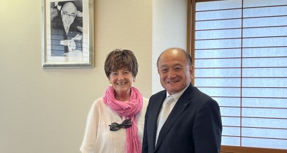 On September 25, 2025, Professor Judit Hidasi of Budapest Business University, who has long contributed to the development of Japanese language education in Europe, visited Josai International University. During her visit, Professor Hidasi met with President Masato Kurabayashi and Professor Maria Shiguemi Ichiyama, Vice Director of the International Cooperation Promotion Organization, to discuss future cooperation, including student and faculty exchanges.