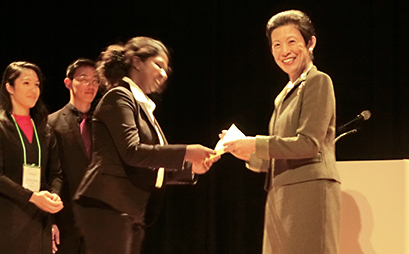 参加学生は、西南学院大学での専門的な講義の受講、グループワーク、フィールドワーク、プレゼンテーション等を通して、日加混合で結成されたグループ毎に協働しながら、学生の視点で問題提起を行い、解決策をまとめ、カナダ大使館での最終プレゼンテーションに臨みました。最終プレゼンテーションでは厳正な審査により本学のミデキ・ファルナンドさんが所属するグループが優勝チームとして選出され、修了式において、高円宮妃殿下より表彰状を授与されました。