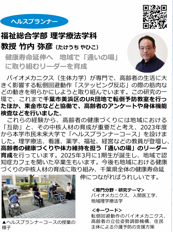 Newsletterに竹内先生の記事が掲載【市民未来大学ヘルスプランナーコース】