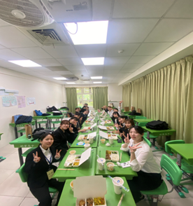 この日は幼華高校・中学校に行き、高校生や中学生に日本語の授業をしました。自己紹介やカルタやビンゴといった簡単なゲームを中心に授業を行い、とても盛り上がりました。お昼には給食を用意してくださって、日本ではあまりない高校での給食という貴重な体験をさせていただきました。とても美味しかったです。