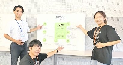 展示・個別相談では、国際文化学科の2つのコース(国際文化コース・韓国語コース)の学び、長期留学・短期研修、一人暮らし、目指せる資格、入試などについて、先輩や先生と気軽にお話しいただける機会を設けています。気になることがありましたらご遠慮なくお声掛けください。