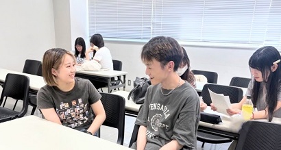 現在履修している「英語演習」も面白いです。十数名程度のクラスで、その半数が留学生なので、毎回のペアワークでさまざまなトピックについて話し合うと、英語だけでなく文化的な違いも学ぶことができます。日本で当たり前のことが他の国では当たり前でないことに気づいたり、他の国のことを教えてもらえたりして面白いです。