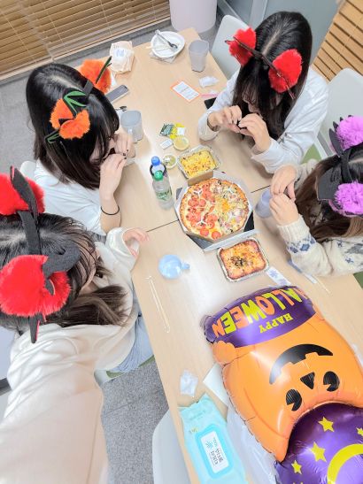 寮の休憩室を利用して、日本人の先輩方とハロウィンパーティーをしました!