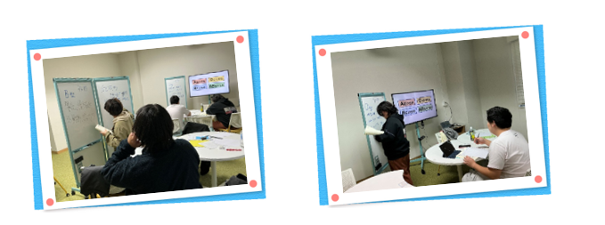 2025年12月12日に開催された「スピーチ&アフレコ大会」に向けて、自分たちで考えたアフレコの練習をしました。(学部生と留学生別科合同のチームの練習です。アニメに合わせてセリフを自分たちで考え、アニメの口の動きに合わせて感情をこめて伝えられるよう練習中です。)