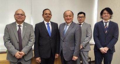 2025年10月8日、東京紀尾井町キャンパスに、バングラデシュ人民共和国大使館よりムハンマド・ダウド・アリ駐日大使とソヨッド・ナシール・エルシャド経済公使の2名が来訪され、倉林眞砂斗学長を表敬訪問しました。倉林学長は、ご来訪を歓迎し、「本学の東京紀尾井町キャンパスからもっとも近い大使館との交流を大変喜ばしく思います」と挨拶されました。