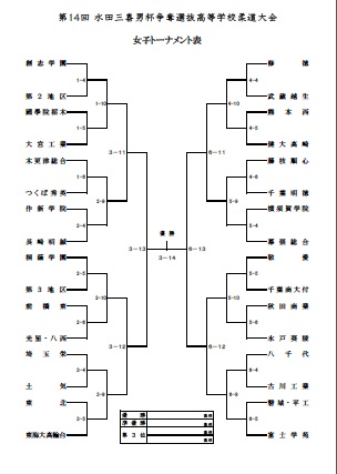 「第14回水田三喜男杯争奪選抜高等学校柔道大会」のトーナメント表を掲載しました 12月26日(金)に開催します「第14回水田三喜男杯争奪選抜高等学校柔道大会」のトーナメント表は下記よりご覧ください。 男子トーナメント表 女子トーナメント表 Copyright (C) Josai International University. All rights reserved.