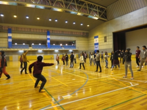 留学生とのスポーツ交流会に参加するのは、今回で2回目となりました。今回の交流会では、「ハンカチ落とし」や「あっち向いてホイ」など日本の遊びを紹介するとともに、お互いの国の有名な歌などを歌いました。また中国の留学生が太極拳を紹介してくれたので、一緒に体を動かして練習しました。太極拳はととてもゆるやかな動きでしたが、まねるのは難しかったです。また、日本人学生はソーラン節を紹介しました。この交流会に参加してくれた留学生(スリランカ、ベトナム、中国)はシャイな人が多くて、最初は距離を縮めるのに時間がかかってしまいました。しかしゲームを一緒に楽しみながら、日本語や英語で積極的に話しかけていくうちに、少しずつ距離を縮めることができました。英語力やコミュニケーション力をもっとつけることができれば、もっと色々な話ができるということを、一緒にゲームをしているうちに強く感じました。今回は準備や計画を立てるのが少し遅くなり、一部準備不足であったという反省点はありますが、イベントを通じてお互いについて知り合うことができ、またお互いの文化について理解を深めることができ、有意義な時間となりました。