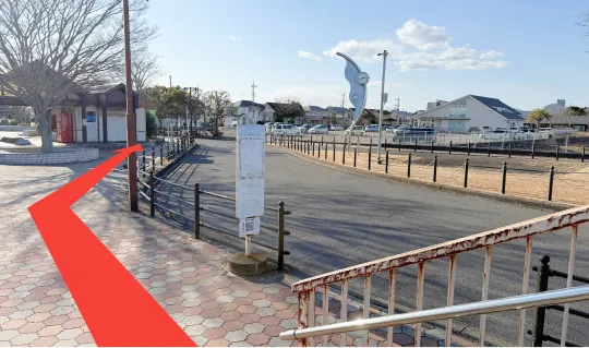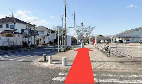 • 역을 뒤로 왼손으로 이동합니다. 정면 횡단보도는 건너지 않습니다.