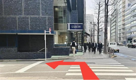 • 이즈미야 바로 앞의 횡단 보도를 좌회전합니다.