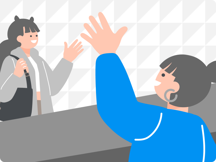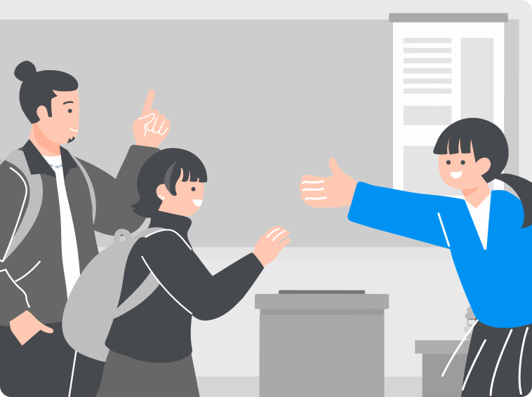 • 정면 입구에서 들어가십시오. 스마트 폰을 준비한 후, 접수 수속을 끝내주십시오.