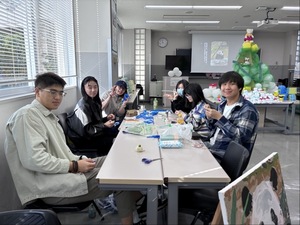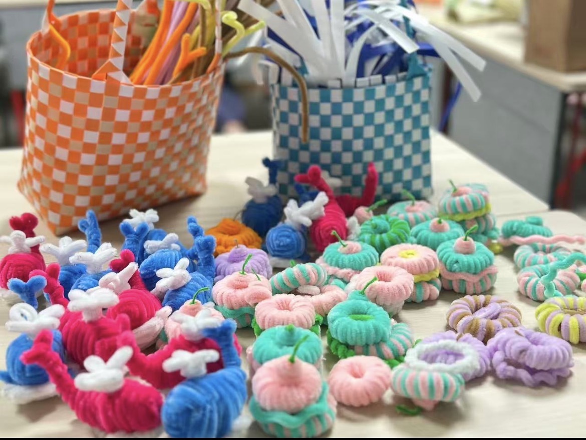 学園祭では教室展示の体験コーナーを担当しました。準備では材料集めや試作品づくりを重ね、10月は気づけばほぼ毎日手工芸品を作り続けていました。大変ではありましたが、みなさんと一緒に作った小物を見てくださったお客様から「かわいい」と声をかけていただき、大きな励みになりました。同じものでも一つひとつ形が少しずつ違い、手作りならではの温かさと面白さを実感しました。疲れ以上に達成感が残り、来年は何を作ろうかと、すでに考え始めています。