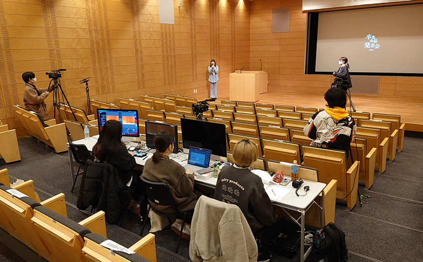 会場の運営スタッフ、Youtubeへのライブ配信スタッフはメディア学部2、3年生が務め、先輩の晴れ舞台を演出しました。