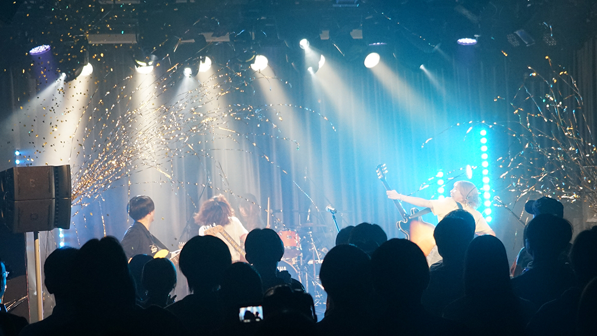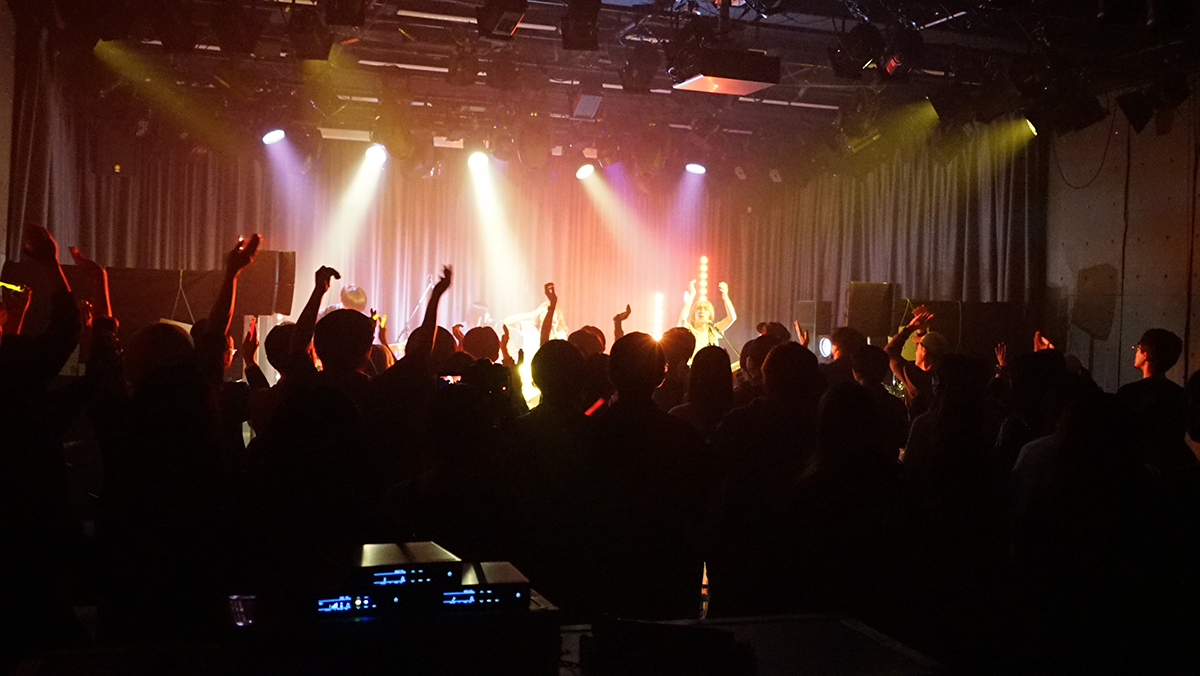 音楽ライブに関わるワークフローを学び、都内で活躍するインディーズバンドを招聘し、学生だけで45分の音楽ライブを作り上げる授業です。
