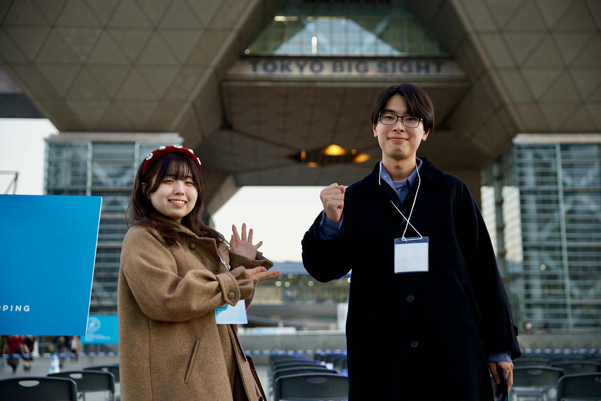 本学メディア学部卒業生の浅野圭佑さんと在学生の都所果恋さん(メディア学部3年)によるチームです。