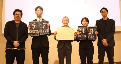 この結果について学生たちは「3人それぞれ意見の方向性が異なり、ぶつかることもあったが、それを乗り越えることでチーム力が確実に高まった。書類審査の時点から通過できるかとても不安だったなか、指導いただいたキャリア形成・就職センターの皆さん、サポートしてくださった先生方、支えてくれた友人、家族に感謝したい」と喜びを語ってくれました。