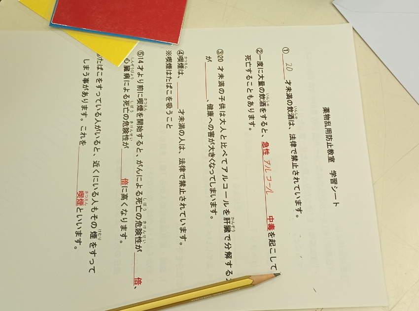 このような声を踏まえて、学生たちは1つの小学校で実践をした結果を、学生同士で教習し、薬物乱用防止啓発活動の内容をさらにブラッシュアップして次の小学校の活動に臨みました。