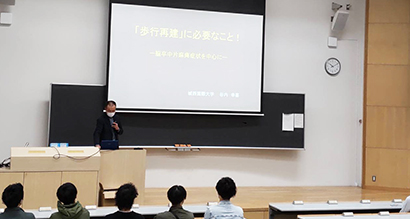 1)福祉総合学部の谷内学部長による「脳卒中の理学療法」をテーマにした講演