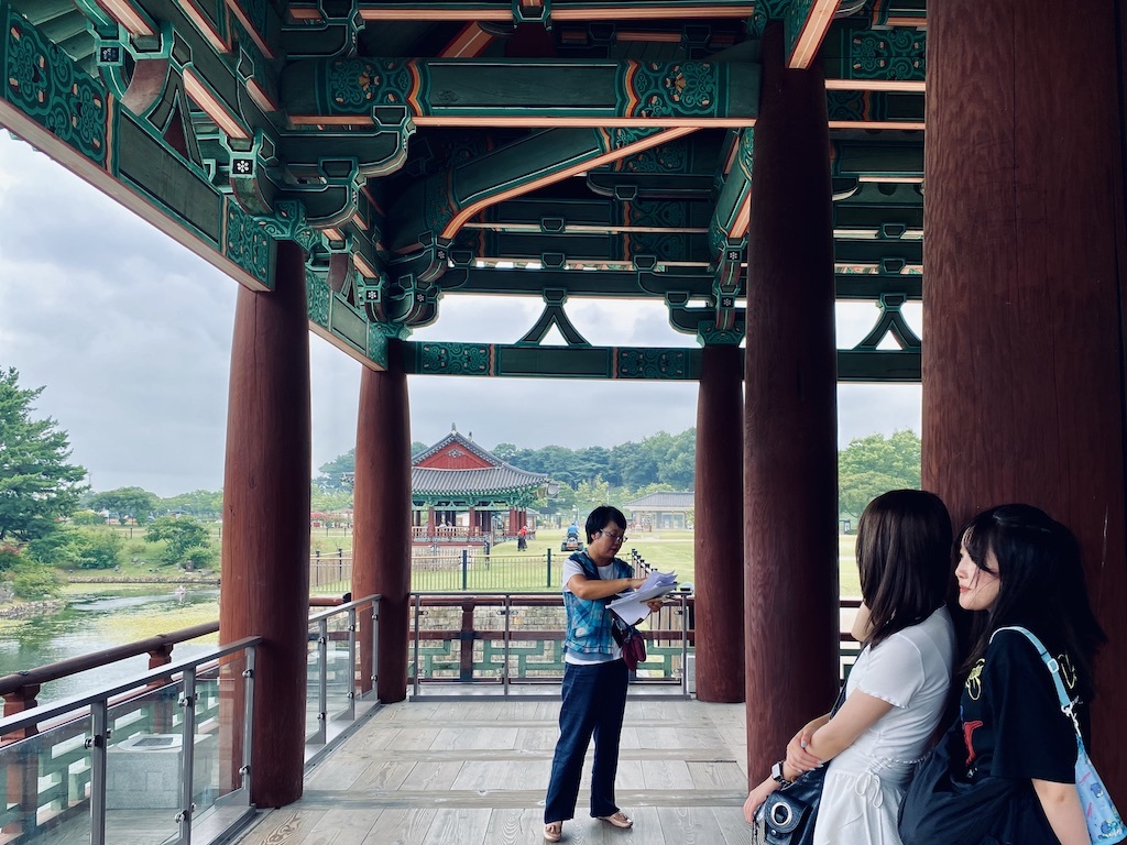 ただ、この月池からは、「王宮の宝飾品ではなく、実際の生活に使用されていた遺物が多く出土された」というお話を聞きました。そのため、宴席などの煌びやかな生活とは、少しかけ離れているのではないのかと思いました。その資料が、この施設の後に向かった国立慶州博物館内の月池館で見学することができるとのことでしたが、今回は、改修工事期間で見ることができなかったので残念です。