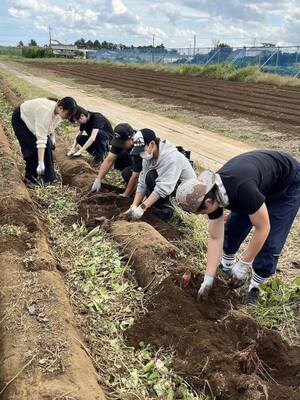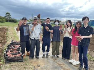 収穫したサツマイモは、11月8日(土)と9日(日)に東金キャンパスで開催されるJIU Festival(大学祭)で、焼き芋にして販売します。皆さまのご来場を心よりお待ちしています!