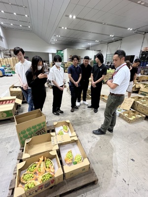 「エアラインによる地域事業」をテーマに研究している長谷川ゼミでは、9月27日、成田国際空港に隣接した「成田市場」を見学しました。