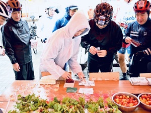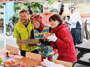 最後に、イベント当日は、台風が接近していたこともあり、あいにくの雨となりましたが、サイクリストの一人として参加してくださった元F1ドライバーの片山右京さんが「最悪の雨だったけど、記憶に残る最高の思い出になるイベントだった。エイドステーションのご飯も美味しかった。」と言ってくれたことで、やっていてよかったなと思いました。もちろん、晴れた方がもっといい思い出に残るコースだと思いますので、サイクリストの皆様にも、天候の良い時にまた訪れてほしいと思っています。