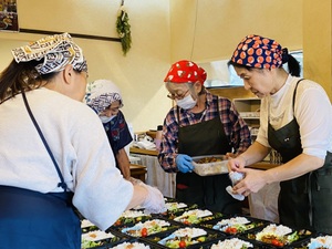 一通りの事前準備が終わり、エイドステーションで提供する料理の仕込みをしてくれているお店の方々が手作り弁当を用意してくれました。私たちの分まで用意してくれたことに感謝しています。