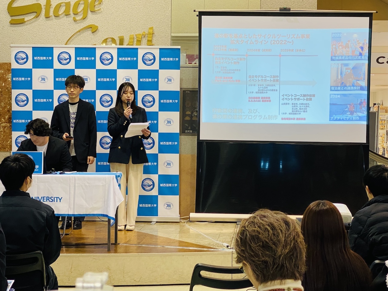 本年度、観光学部が提供する地域連携プロジェクト型授業「域学共創プロジェクトB」(全学共通基盤科目)では、学外に向けた報告会を二度実施しました。