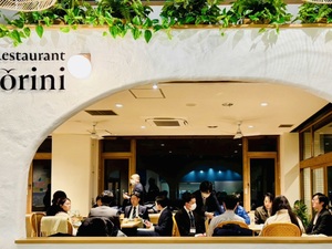 さらに、シーサイドレストラン・サントリーニにおいて夕食をとりながら、本コンテンツの実装に向けた検討会にも参加し、留学生の視点から関係者の方々と意見交換を行う機会をいただきました。