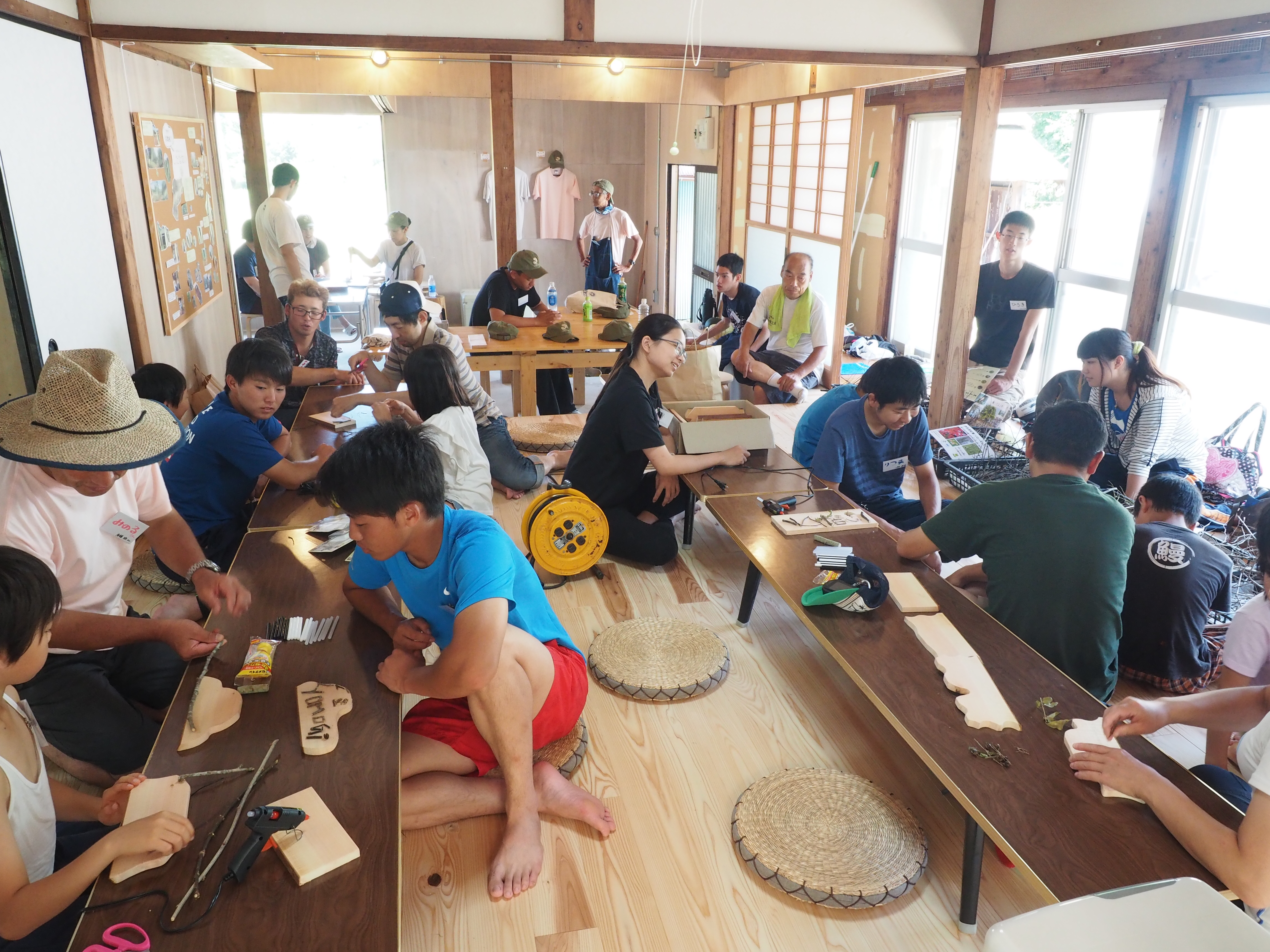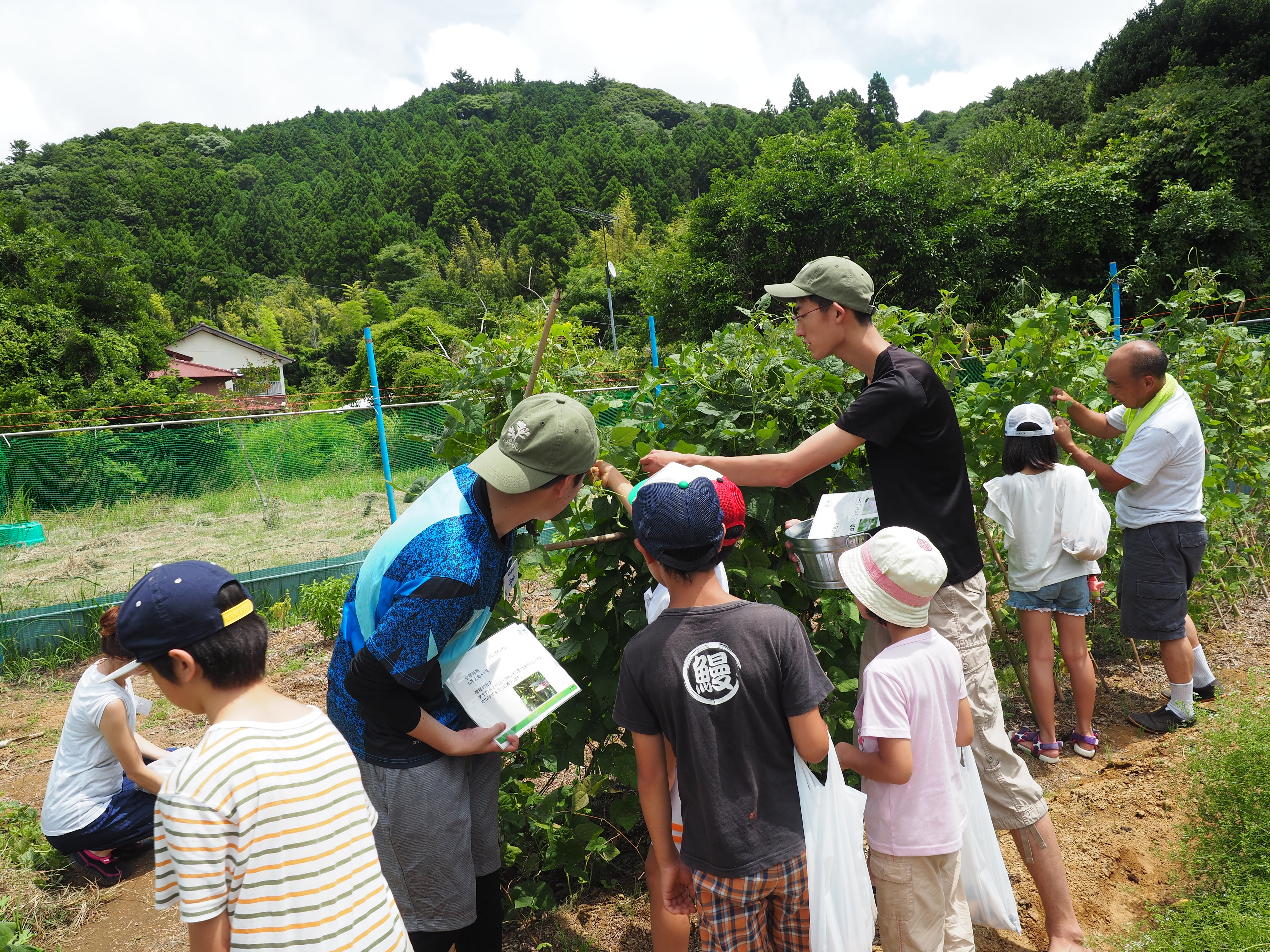 7月30日(日)、2回目のゼミでの地域活動「田舎で夏遊び in四方木」の当日を迎えました。準備段階から関わった活動としては初めての地域活動で、3組10名のご家族が参加してくださいました。イベントの企画内容は「田舎の夏遊びを楽しんでもらうこと」をテーマとしたもので、夏野菜の収穫体験、川遊び体験、地元の食材を使ったBBQ、そしてネームプレートづくり体験を企画運営しました。